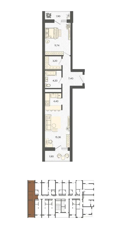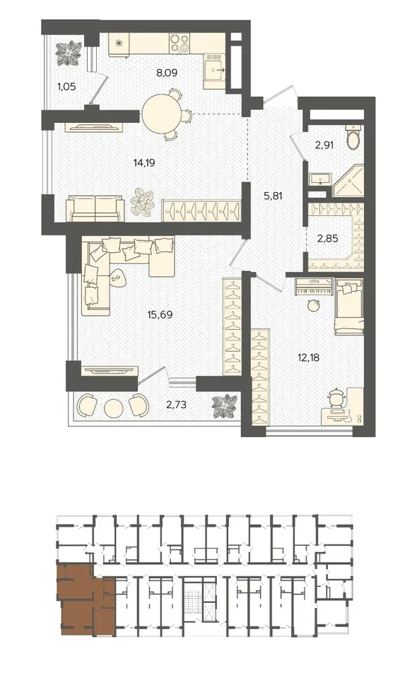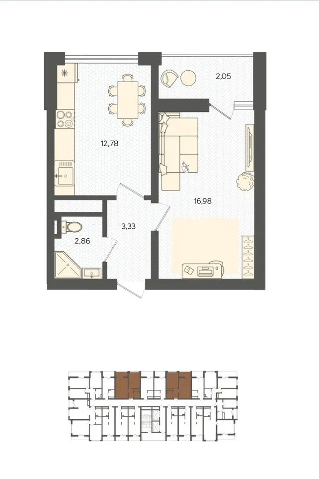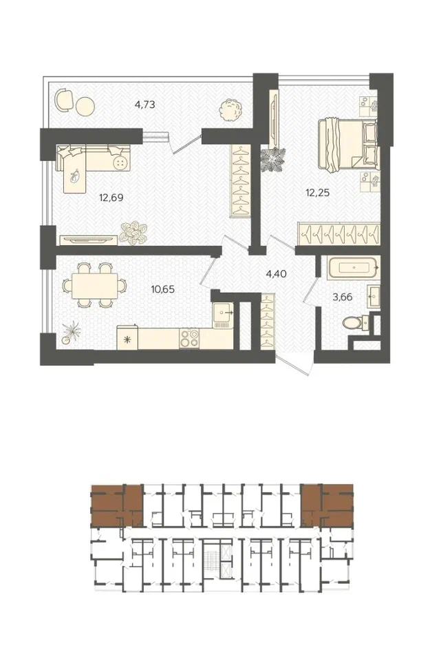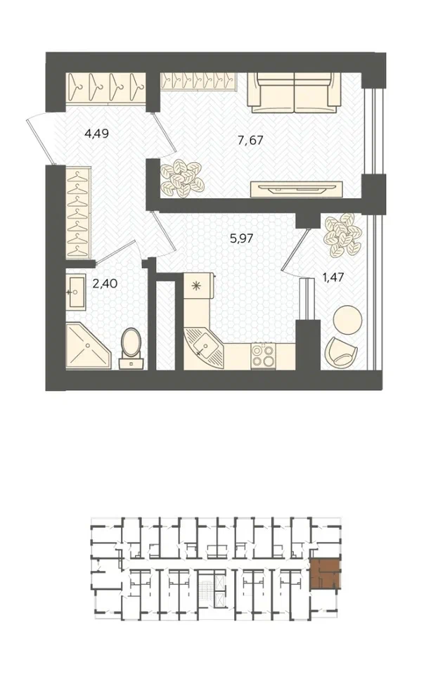 Площадь от 42.99 м2