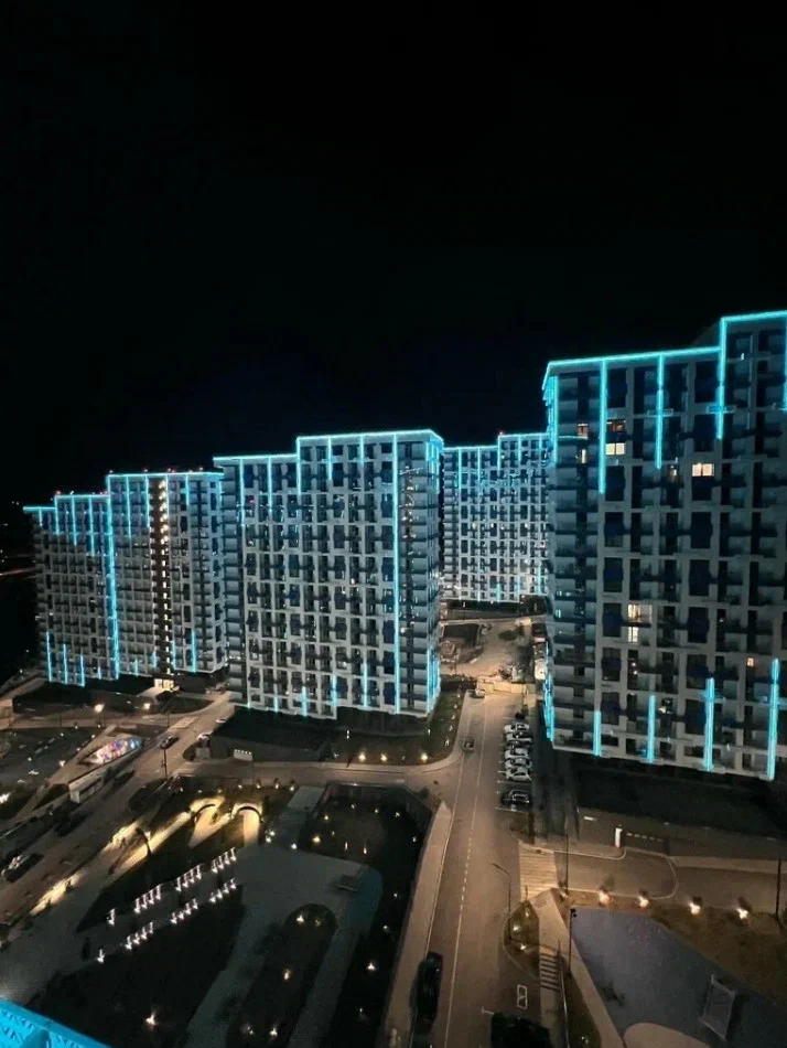 Даже ночью фасадное освещение придает комплексу грациозность , воздушность и чистоту .